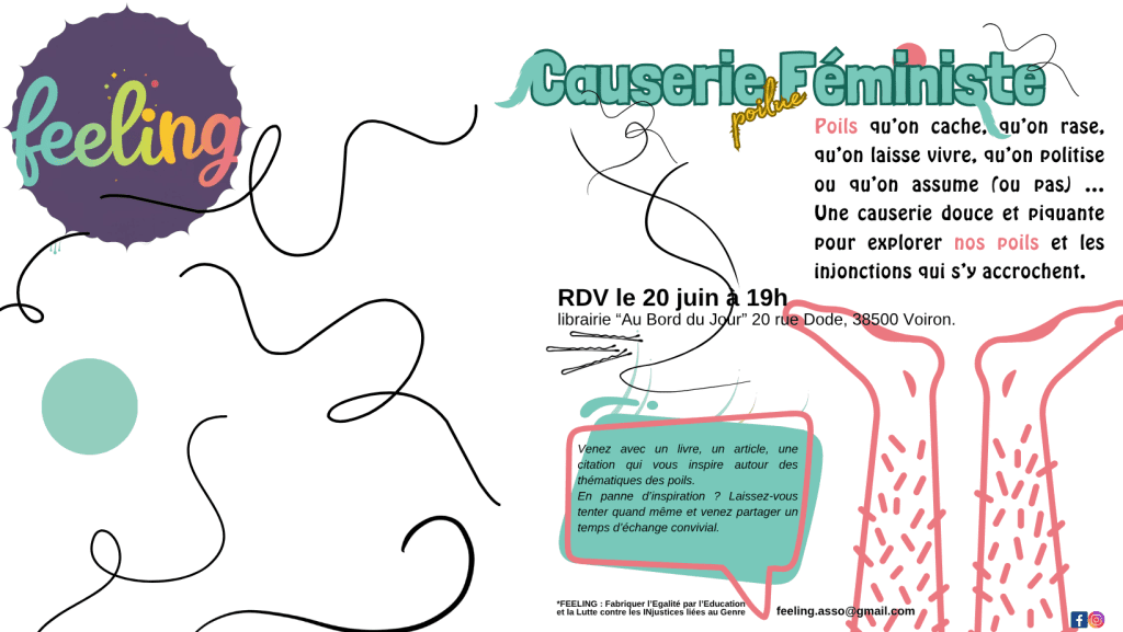 Vendredi 20 juin, à la librairie Au bord du jour à Voiron, on s’est retrouvées à 18 pour une causerie poilue-féministe à la veille de l’été. Une belle soirée d’échanges,