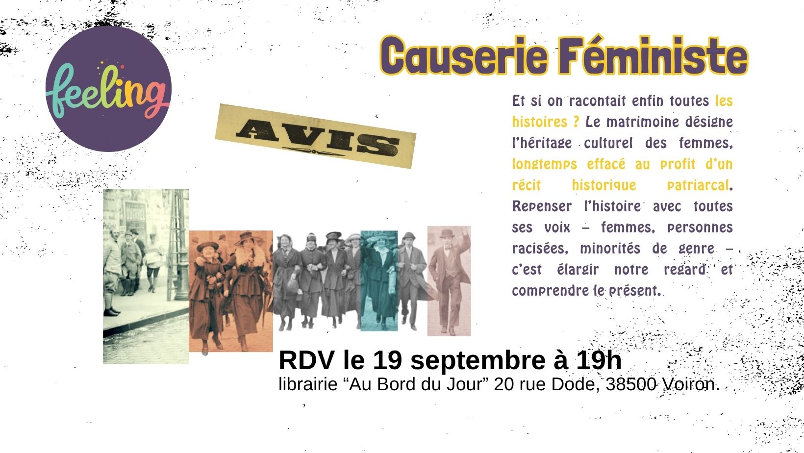 Feeling tiendra une table toute l'après-midi aux 17e Rencontres Luttes & Résistances de l'association voironnaise RLF. Une façon de dire que féminisme doit s'accorder avec d'autres luttes ! RDV de 13h30 à 18h pour le village associatif à la Salle des fêtes de Voiron, place Jacques Antoine Gau. https://rlf38.org/2025/12/30/17e-rencontre-luttes-resistances/ Pour plus d'info !